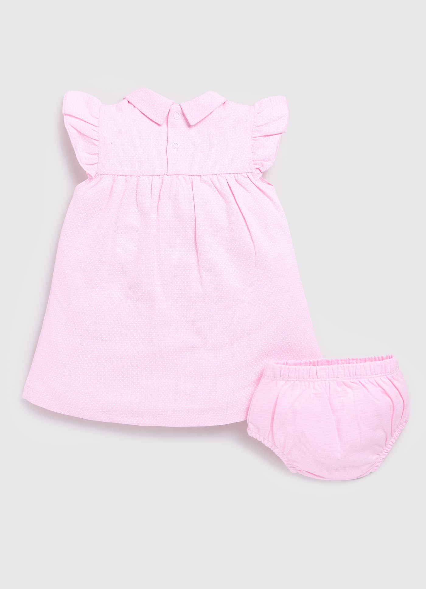 - The baby frock boasts a comfy round neck and handy buttons for fuss-free dressing, while the panties feature a gentle waistband and pull-on design for quick diaper changes.